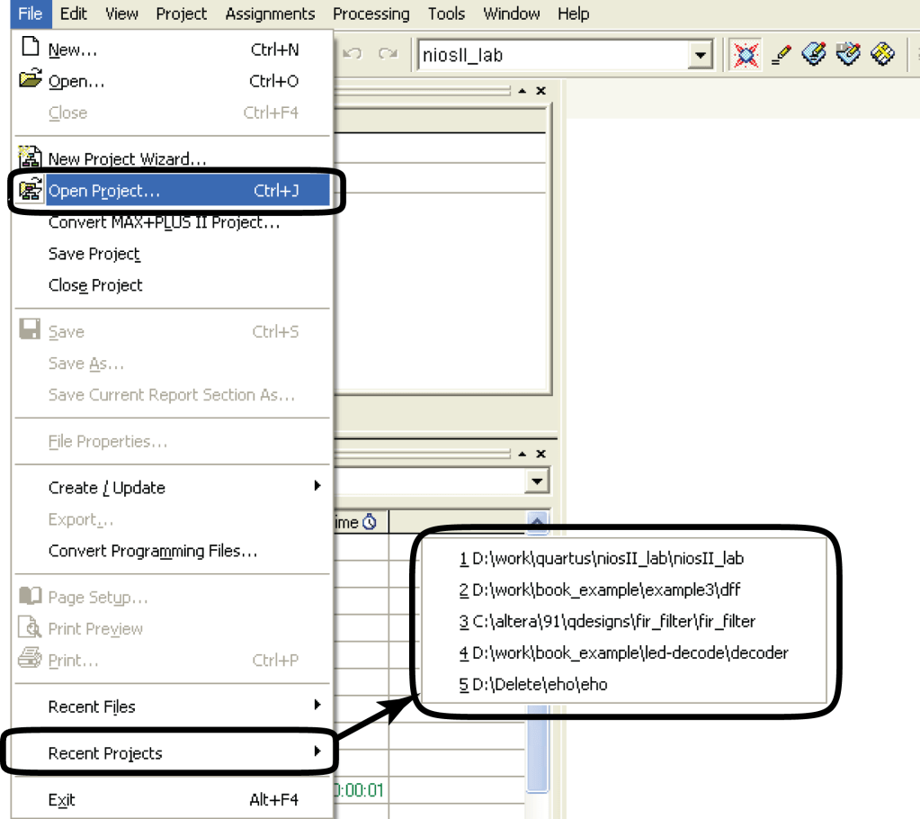 - Використати TCL команду project_open ім’я_проекту.